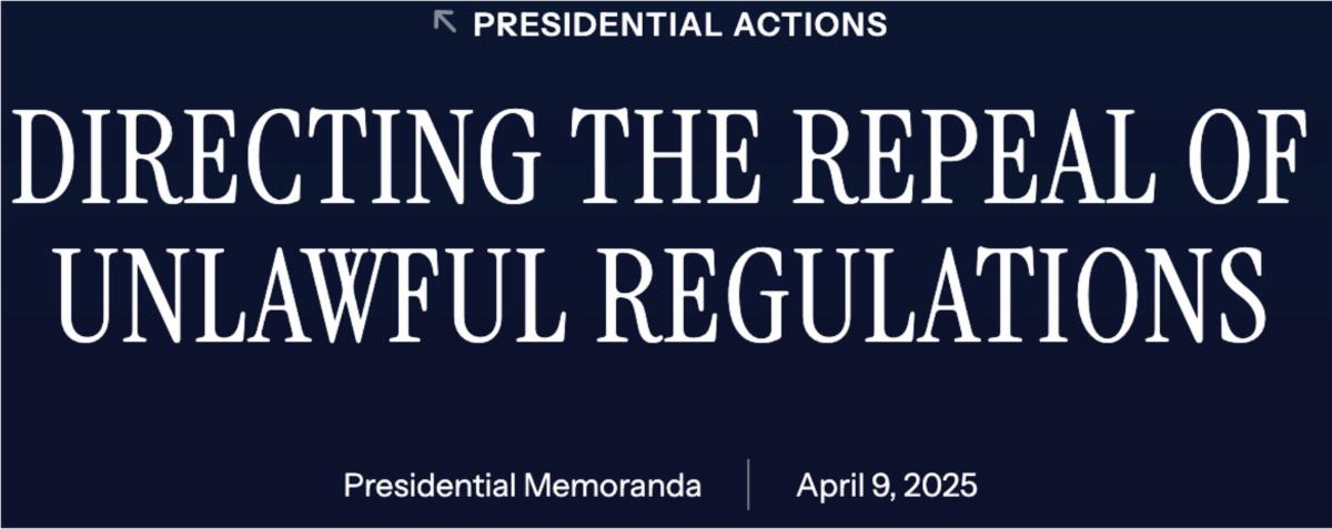 The new executive order, “DIRECTING THE REPEAL OF UNLAWFUL REGULATIONS” (April 9, 2025), can and should be used to terminate straightaway the EPA’s endangerment finding (EF) for greenhouse gases, along with the more than 100 other regulations that attempt to solve a non-existent climate crisis.