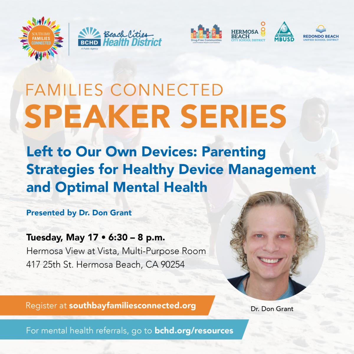 This session will provide Beach Cities caregivers and families useful information and tools to address responsible technology use and online presence with their families. Held in partnership with Beach Cities Health District, South Bay Families Connected, Hermosa Beach City School District, Manhattan Beach Unified School District and Redondo Beach Unified School District.