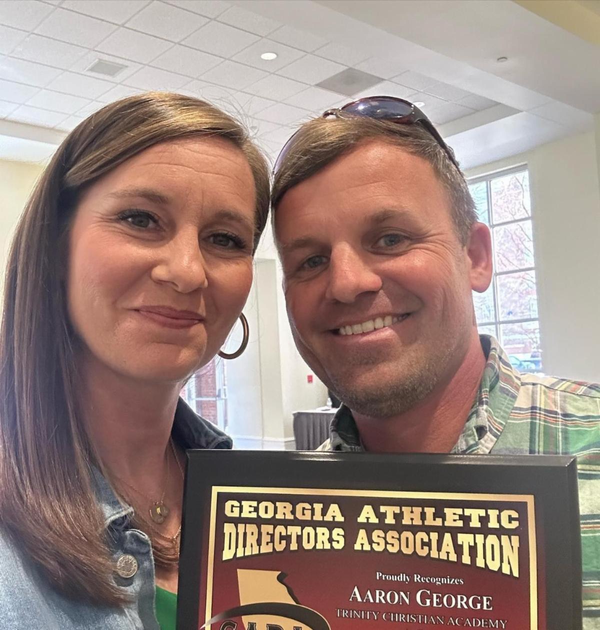Congratulations to Aaron George '02 for winning the GIAA-AA Athletic Director of the Year Award. Aaron is the Director of Athletics at Trinity Christian School in Dublin, Georgia. He is the husband of Cat George '02. Both he and Cat are former King College soccer players. Great work, Aaron!