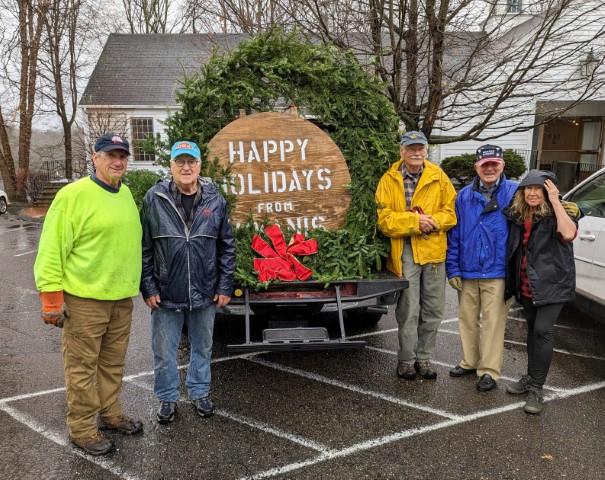 10:30 a.m. (after the club meeting) Kiwanis holiday wreath construction at Norfield and hanging the wreath on Weston's historic onion barn.
