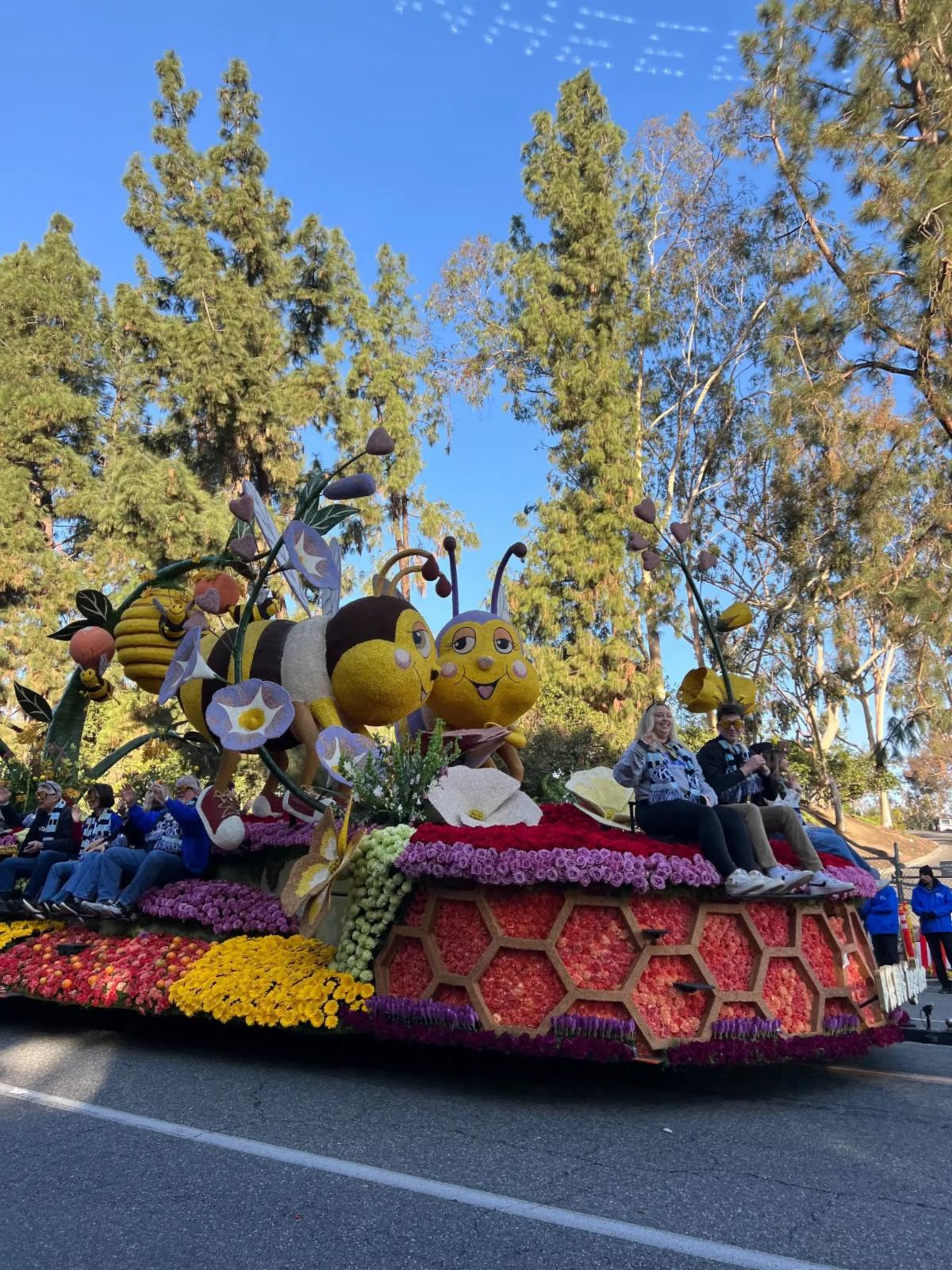 To appreciate the movement of the bee's wings on the float, click on the link above to see a 46-second video clip from Fox 11 Los Angeles, KTTV, of Beeing Together in the parade. | |