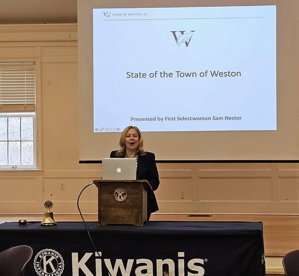 I want to express my sincerest gratitude to the Kiwanis Club of Weston, Connecticut for extending an invitation to me to deliver the "The State of The Town" address. I am truly touched by your warm welcome and the remarkable questions that you posed. | |