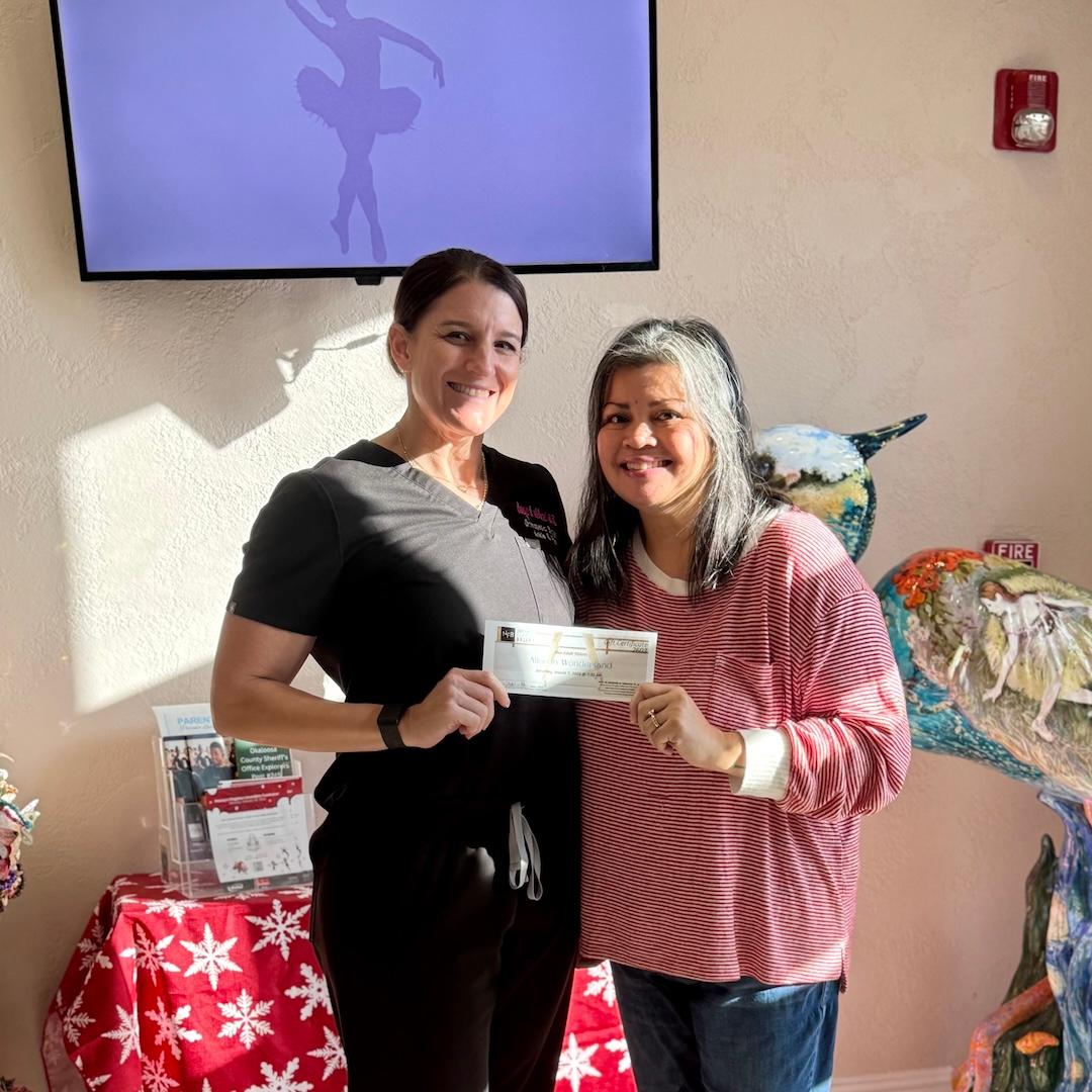 Dr. Ahmed also made the shorter trip to Fort Walton Beach for her monthly on-site clinic with the Northwest Florida Ballet. While she was there, she took a moment to generously donate her Alice in Wonderland tickets to the deserving staff of local non-profit, The Pearl Project Northwest FL Chapter.