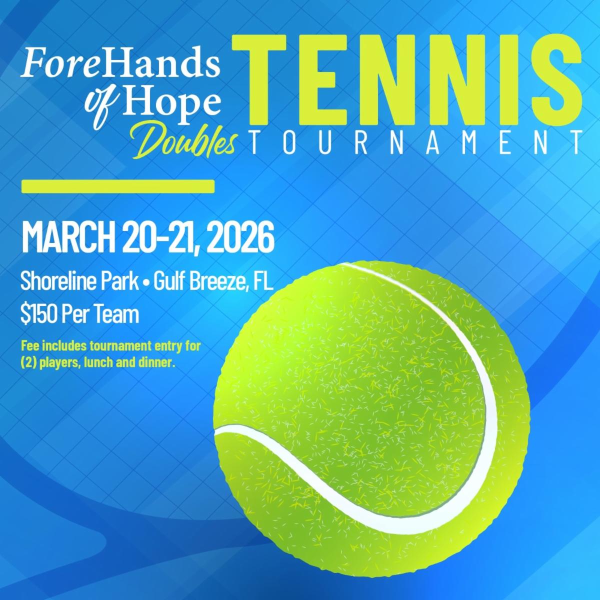 Don't miss your chance to register for the inaugural ForeHands of Hope Doubles Tennis Tournament on March 20-21 at Shoreline Park in Gulf Breeze. The event will benefit Hands of Hope Medical Mission, established and led by our very own Dr. Steven Kronlage and Dr. Chris O’Grady. Click the button to learn more!