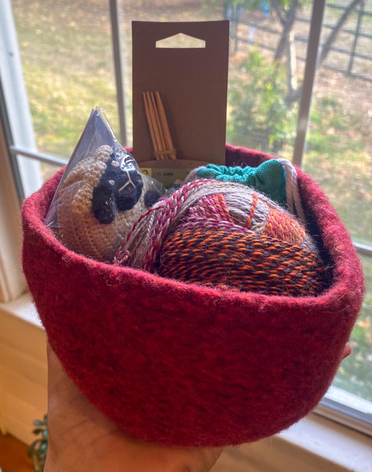 As I own a shop, I would be remiss if I didn't say something shop ownerish about the upcoming holidays. I am slowly restocking favourite yarns, we have some Malabrigo knitting kits, there are a hundred hats (only a slight exaggeration), a few new rugs, and I will be spending the mid-month dyeing like a fiend. We unearthed some fantastic dead stock yarns in the bottomless storage that are all tied up and ready to hit the dye pot, so there will be a number of one-of-a-kind skeins in a variety of fiber types (one of them is a fantastic wool-silk combo). All of the children's sweaters are 20% off, and the Yarn Cemetery is stocked with an amazing selection of sale yarn, some good gift items, and for the first time ever, a rug. There is even this lovely little sock kit that has not sold for reasons that are utterly obscure to me- I mean look at that! It's got a hand felted yarn bowl, a ball of Zauberball, size 2 DPNs, a sheep tape measure, and folding scissors for $55! Someone needs to take this thing away.
