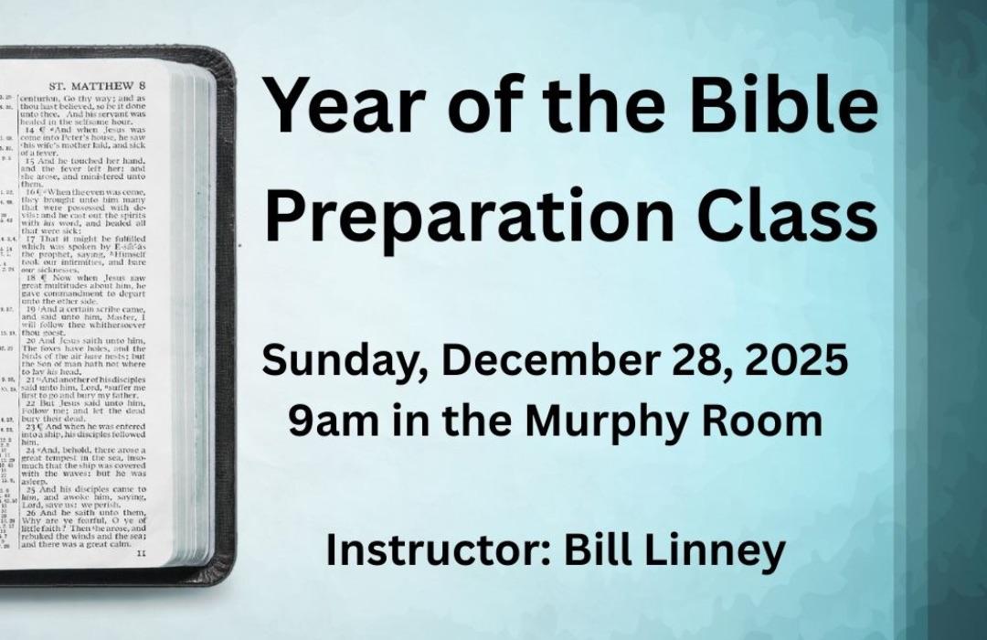 Get your Bible reading off on the right foot. On Sunday, December 28th, at 9:00 a.m., join us in the Murphy Room for a special kick-off class led by Bill Linney. He’ll walk us through the history and culture of the biblical world to help set the stage for our 2026 Bible reading plan - a great way to start strong!
