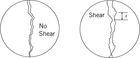 Direction of movement: A typical settlement crack is vertical, where the crack opens up. The bumps and crevices line up and fit together like the pieces of a puzzle. If the crack face has moved in any other directions, such as a shear crack, the quarter-inch rule described above does not apply. This can be a significant structural concern.