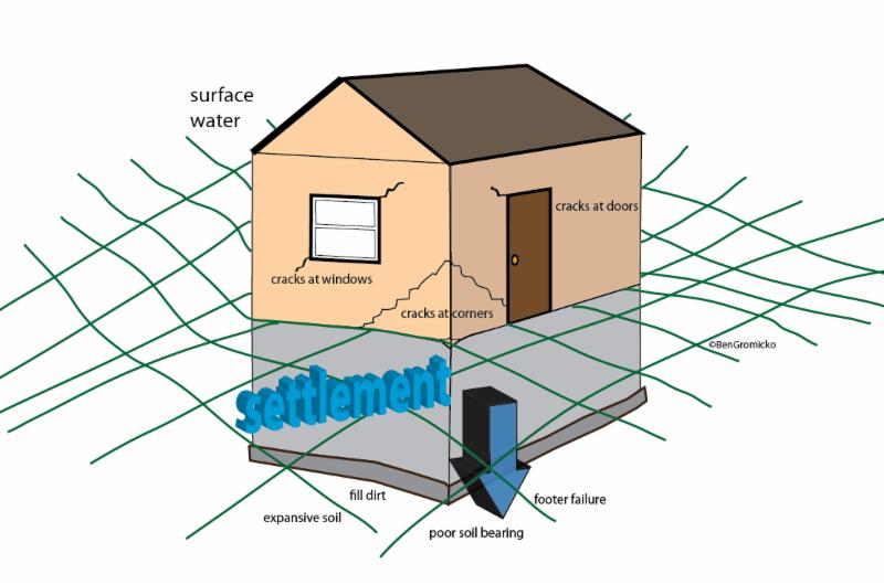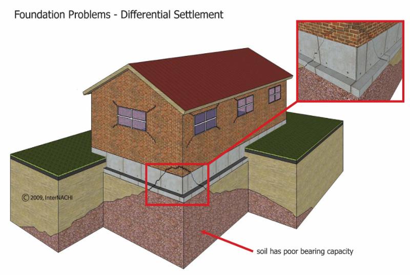 Repaired and re-cracked: A settlement crack that has been repaired and has re-cracked (not just a hairline crack) also could indicate ongoing movement.