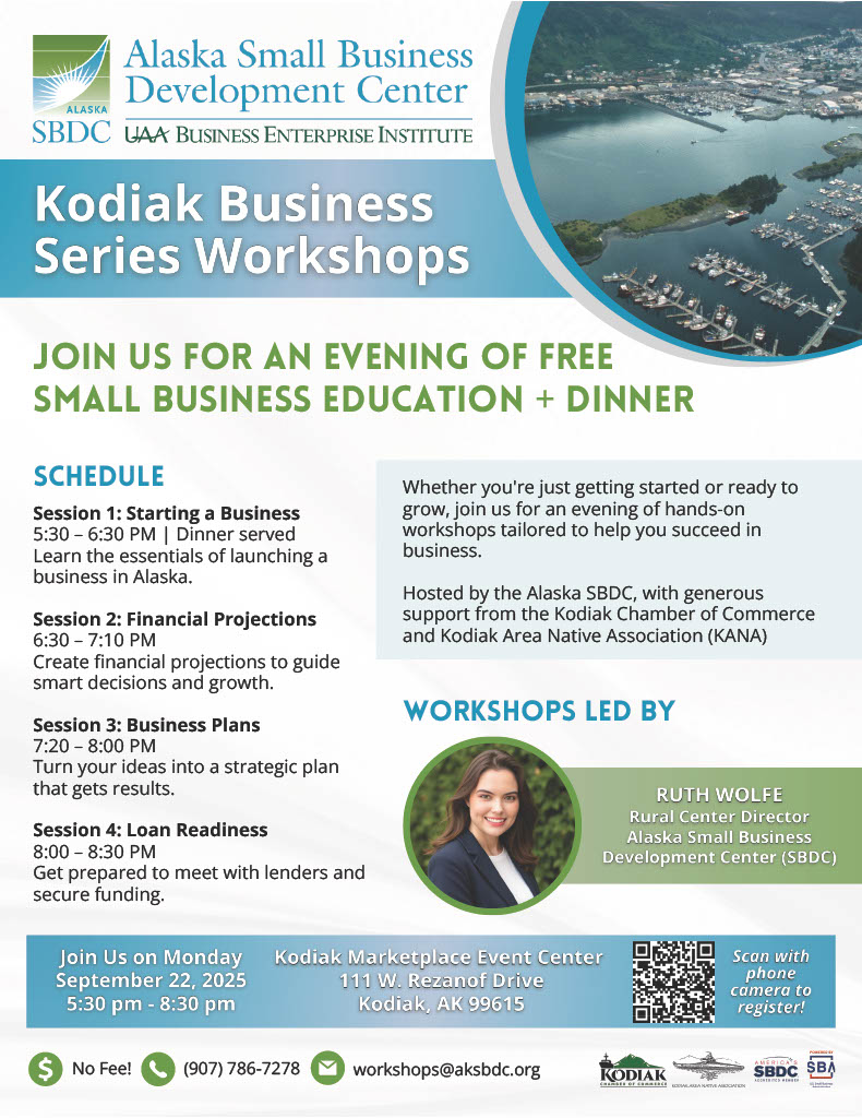Hosted by: Alaska Small Business Development Center, KANA, Koniag Inc & Kodiak Chamber of Commerce