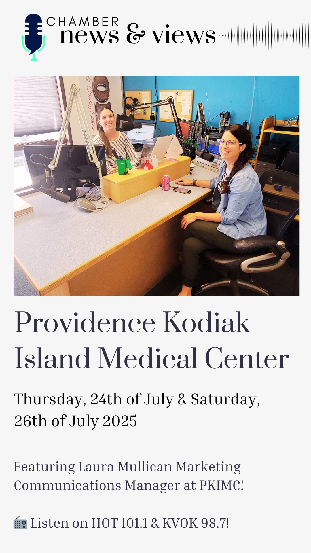 Ericka Thompson will continue to work with members as our Partnership & Events Executive. Alexxandra Carter is our Financial & Organizational Assistant and Alexa San Juan has accepted the Administrative Assistant position in Linda’s departure. We’ve also added Julia Walker to our team as our new Summer Litter Patrol Supervisor. Our staff and new summer litter patrol crew are settling into their roles, learning, doing and engaged in what the Chamber does and has to offer. I am excited for the expansion of our capacity to improve our focus on member relations and all that we will be able to do in the coming months and years. I'd also like to welcome Laura Mullican, Communication Specialist with Providence Kodiak Island Medical Center to our Board of Directors. Laura filled an open board seat vacated in June by Nichole Rohde, owner of Near Island Coffee.