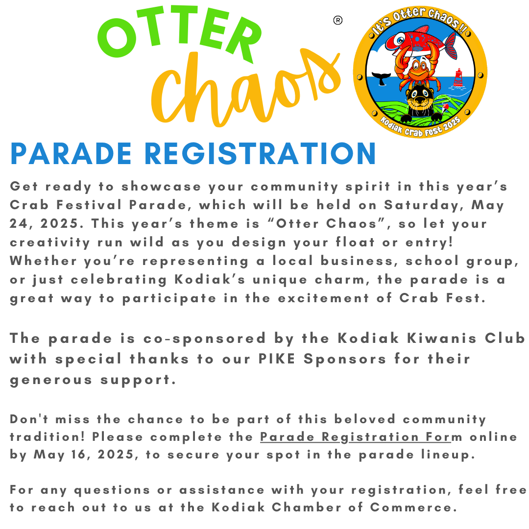 Contact the Chamber office for more details! 907-486-5557 or email chamber@kodiakchamber.org.