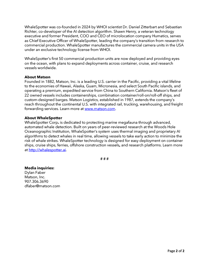 Member of the Year: MATSON