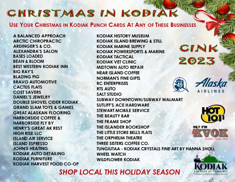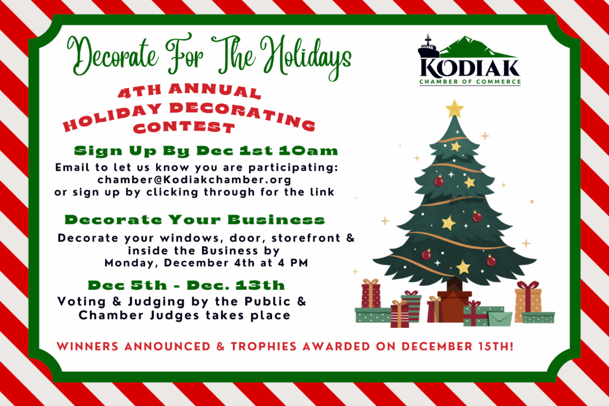 As the days get shorter and we head towards winter, the Chamber team, our businesses and the Kodiak Community are all busy and ready for an exciting season of shopping for friends and loved ones! Ready for celebrations at home and at work, ready to get out and enjoy as many festive Community Events as possible. From music, dance, art, and light shows, to great food & drinks, shopping, weekend after weekend of holiday bazaars, photos with Santa, school winter concerts, the City's Annual Christmas Tree Lighting Ceremony, the Harbor Lights Parade, and then the Annual Joe Floyd Basketball Tournament at the end of December....Kodiak does not disappoint this time of year. We know how to celebrate and embrace living to the fullest and we absolutely do.