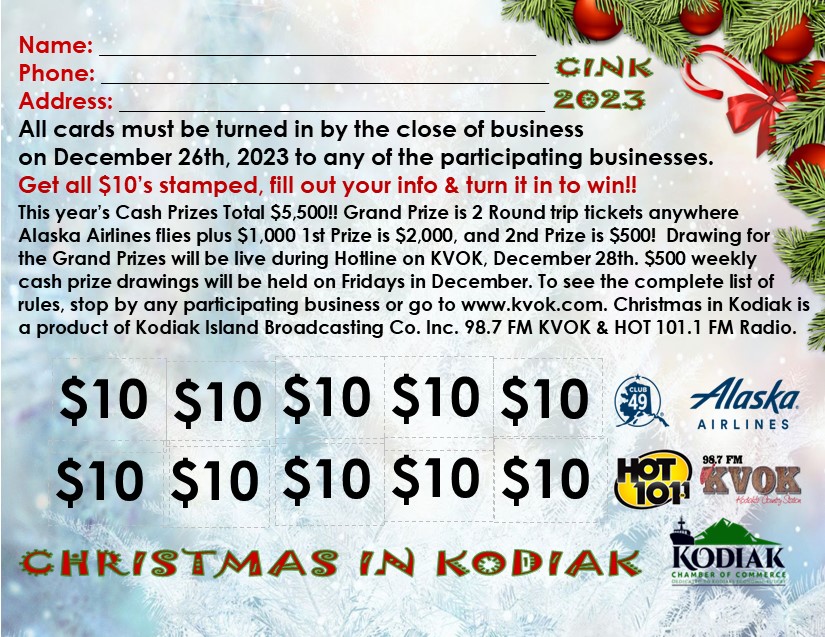 Our Coast Guard Appreciation Dinner will be held on Friday, February 9th, 2024. The dates for ComFish Alaska 2024 have been set for April 11-13, 2024 in the brand new Kodiak Marketplace and Crab Fest planning is in the works for Memorial Day Weekend!