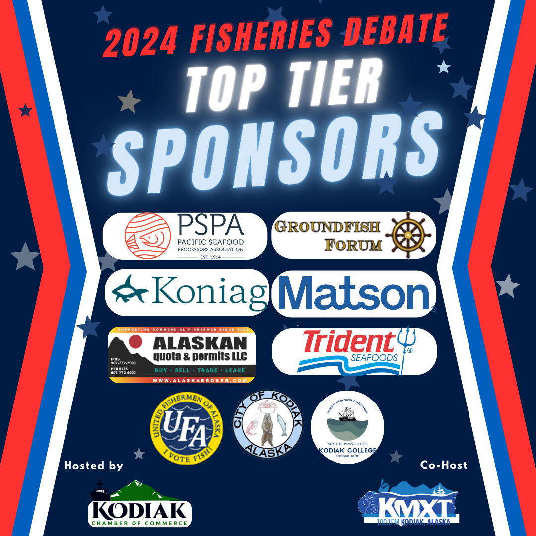 Tremendous thanks and recognition go to our Fisheries Debate Committee members Julie Bonney, Julie Matweyou, Julianne Curry, Rebecca Skinner, Linda Kozak, Theresa Peterson, Nick Mangini, Hailey Ivanoff, Mary Beth Loewen, Davis Hovey, Terry Haines, Chamber & KMXT Staff, Matt Alward, United Fishermen of Alaska President and all of our sponsors for helping to make this year’s fisheries debate possible.