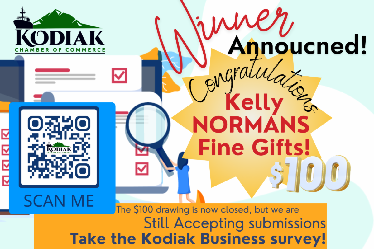 The drawing is now closed but please complete the survey to give us a better indication of what the current local challenges are, what our strengths are, how successful the Kodiak business community is and how the Chamber can better serve our members through educational and training opportunities.