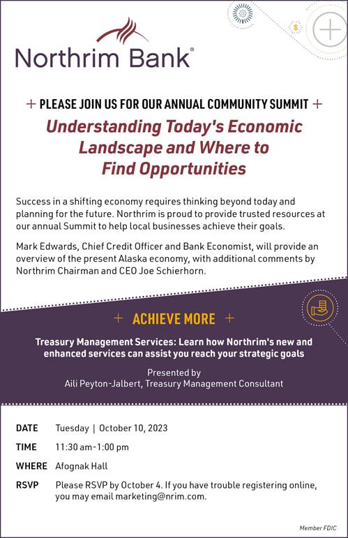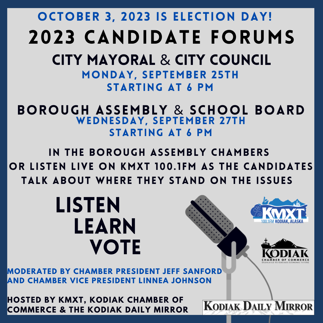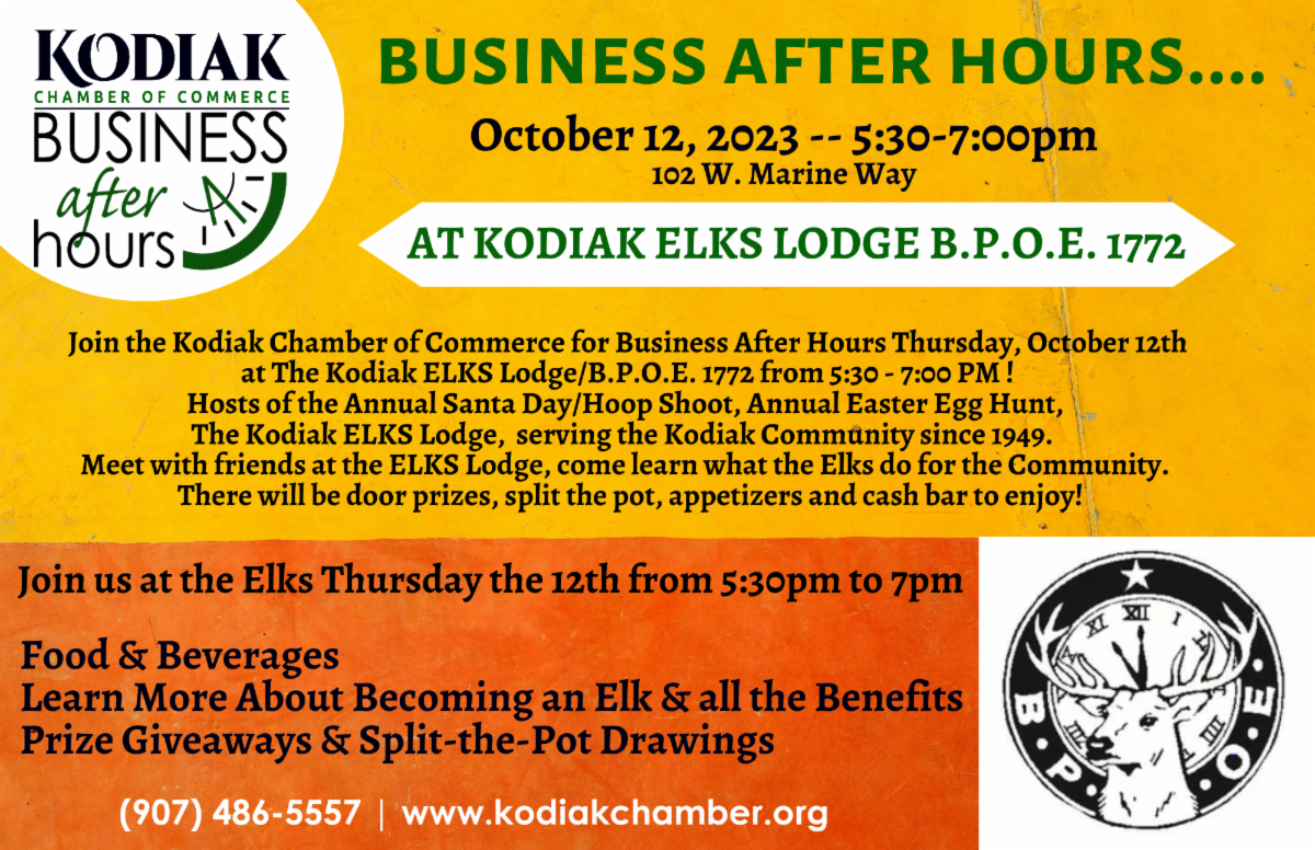 As we head into the fall we have many exciting events taking place. Candidate Forums tonight and Wednesday in the Borough Assembly Chambers and broadcast live on 100.1 FM KMXT. Chamber Board Election and the Annual Meeting & Recognition Dinner at the Afognak Center on Saturday, October 28th! Moonlight Madness & Downtown Trick or Treat and not long after that will be our Annual Holiday Decorating Contest for Businesses. We are working on picking a theme for Crab Fest 2024 and then we’ll launch the Logo & Poster Contest. There’s also a Relocation Guide Photo Contest coming up.