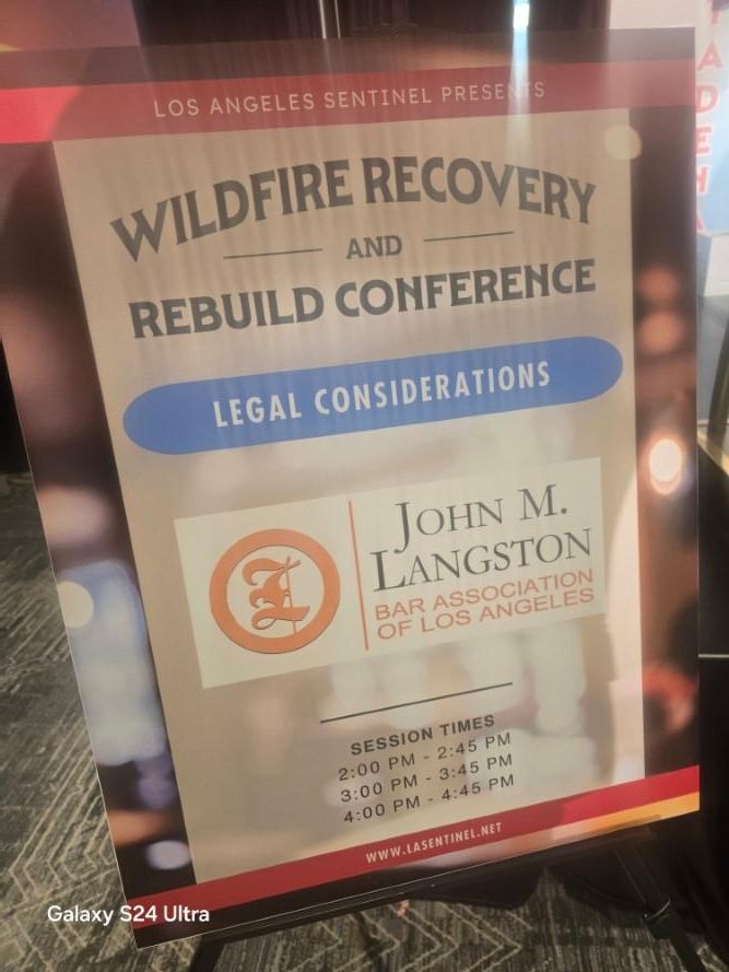 We continue to sow seeds through community service. Last month Langston participated in the Los Angeles Sentinel Wildfire Recovery and Rebuild Conference with over 600 attendees, by providing seminars on legal matters involving the Wildfires. Numerous attendees expressed their heartfelt gratitude for the crucial information shared and the impact the conference had on them. We also served and participated in the Legal Aid Foundation of Los Angeles Disaster Relief Legal Clinic and other legal clinics.