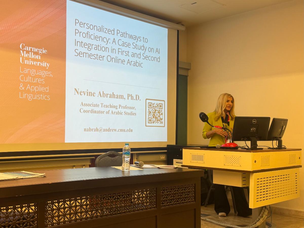 Additionally, Dr. Abraham gave a presentation entitled “Personalized Pathways to Proficiency: A Case Study on AI Integration in First and Second Semester Online Arabic” at The International Conference in Innovation and the Evolving Landscape of Arabic Language Learning: K-16 and Beyond held at the American University in Cairo, Egypt.