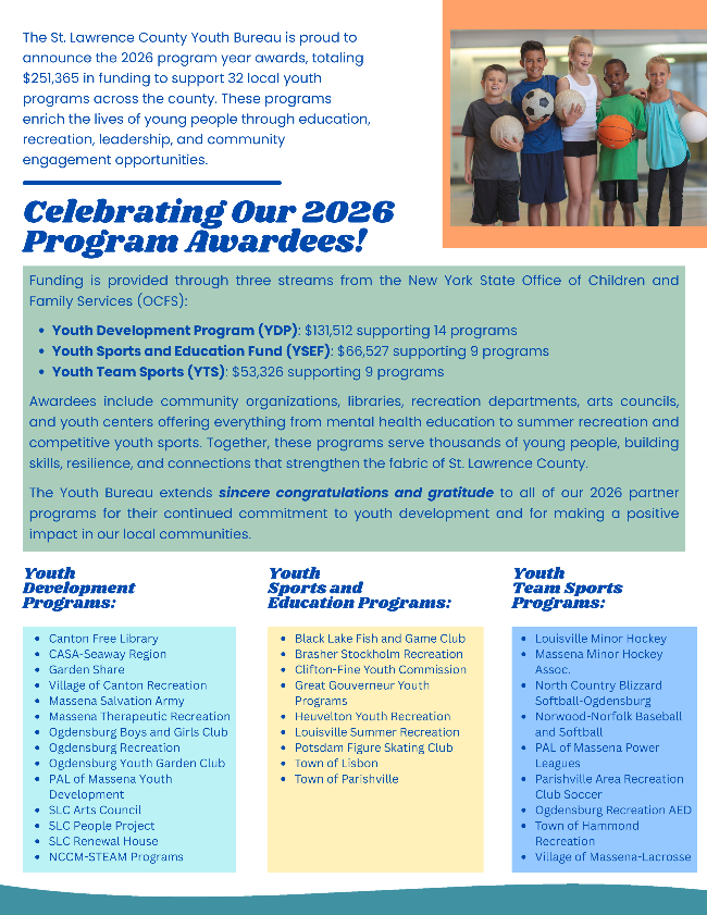 Youth Bureau | 80 State Highway 310, Suite 4 | Canton, NY 13617 US