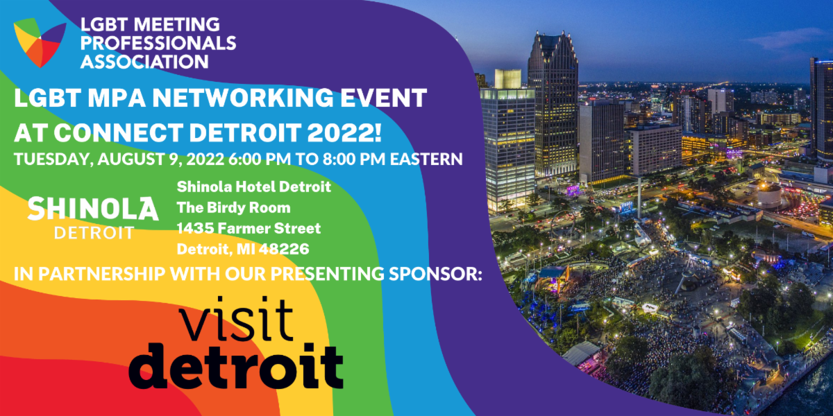 Join us at our LGBT MPA Networking Reception at Connect Detroit 2022, in partnership with our Presenting Sponsor, Visit Detroit!