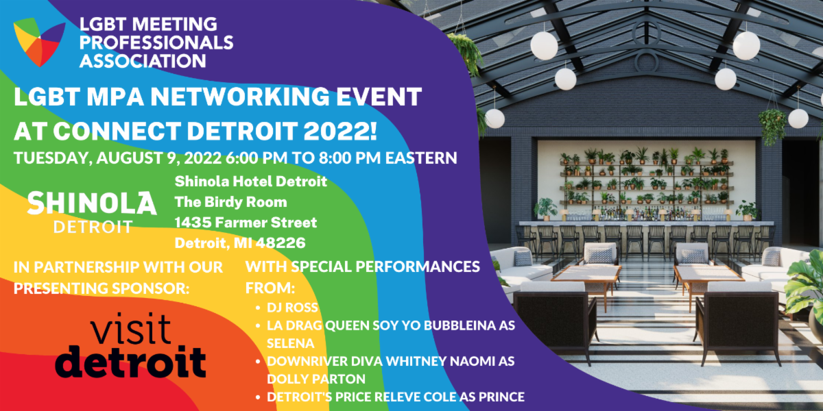Join us at our LGBT MPA Networking Reception at Connect Detroit 2022, in partnership with our Presenting Sponsor, Visit Detroit!
