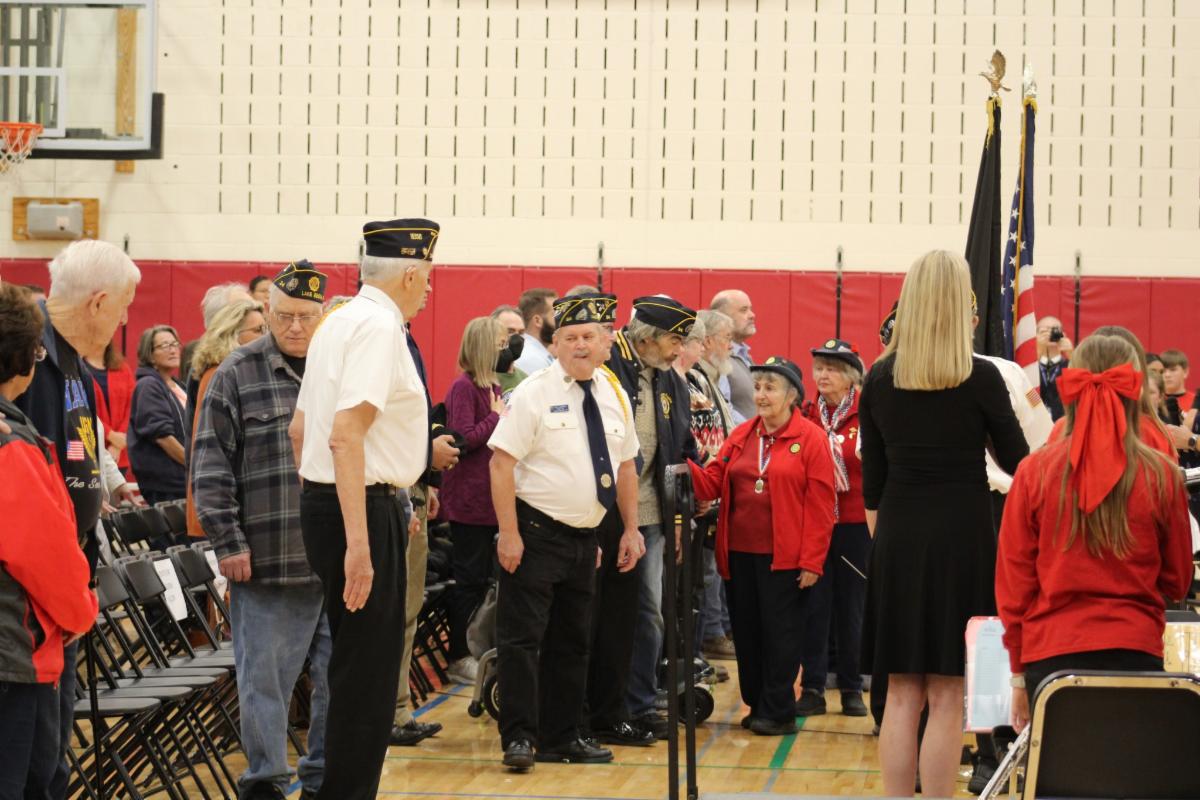 This morning of November 11th, Lake Geneva Middle School hosted its annual Veterans Day celebration. The program featured patriotic music performed by the school’s seventh and eighth-grade orchestras, bands, and choirs, directed by Mrs. Lauren Klement, Mrs. Amanda Krause, and Mrs. Kim May. Mrs. Deanna Deal accompanied the choirs.