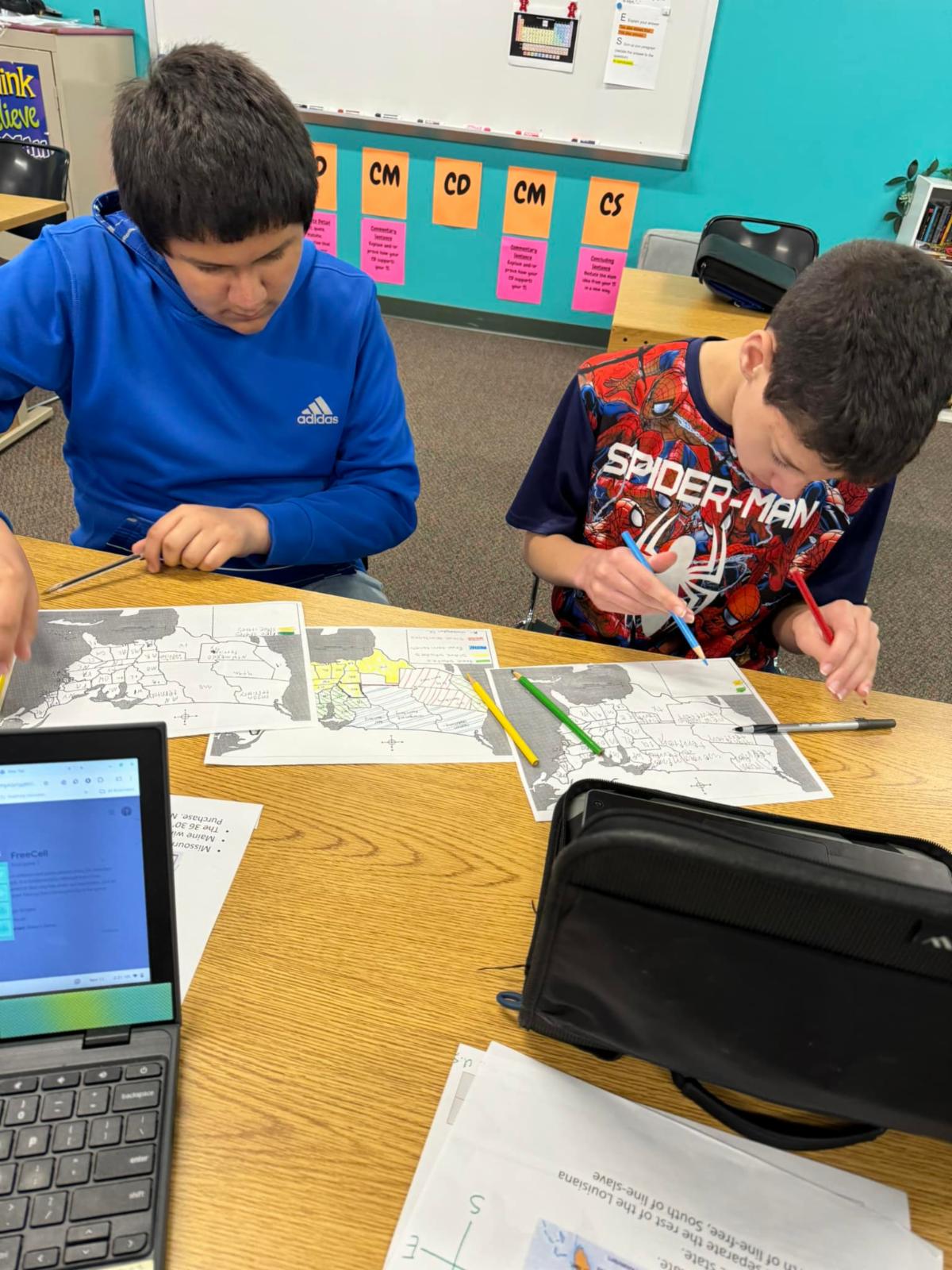 Mr. Marten’s class working on the Map of the US in 1850!
