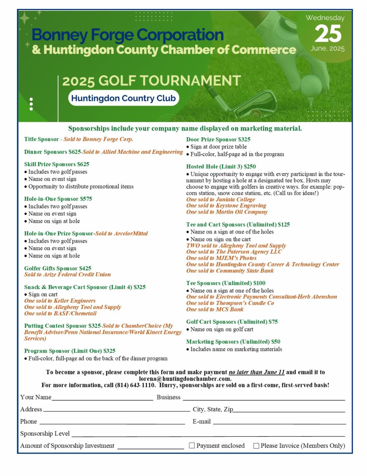 Annual Bonney Forge Corp. & HCCC Golf Tournament
