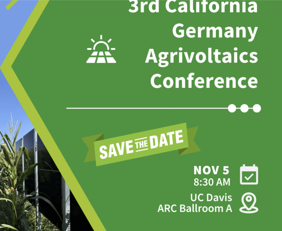 The Clean Coalition is a partner organization for the 3rd California Germany Agrivoltaics Conference, which takes place 5 November 2025 in Davis, California. Register here.