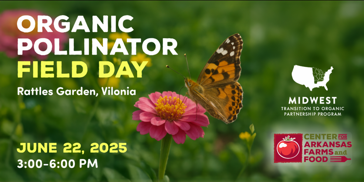 Join us at Rattles Garden in Vilonia on Saturday, June 22 from 3:00–6:00 PM for a field day focused on supporting pollinators on organic farms. Farmer Tara Stainton has been growing organic vegetables and cut flowers for over 15 years and selling at the Hillcrest Farmers Market in Little Rock. During this event, she’ll share how she creates and maintains habitat for pollinators and other beneficial insects on her farm.