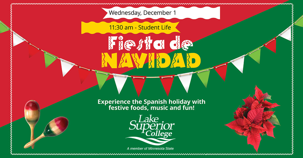 - Celebrate Fiesta de Navidad, a collaboration between Student Life and the online Spanish program, Wednesday, December 1, at 11:30 a.m. Visit the Student Life kiosk to learn how Spanish-speaking countries celebrate the Christmas and New Year holidays. The event will also include alfajores (cookies with caramel sauce), horchata (a cinnamon and vanilla rice milk drink), Spanish music and holiday crafts.
