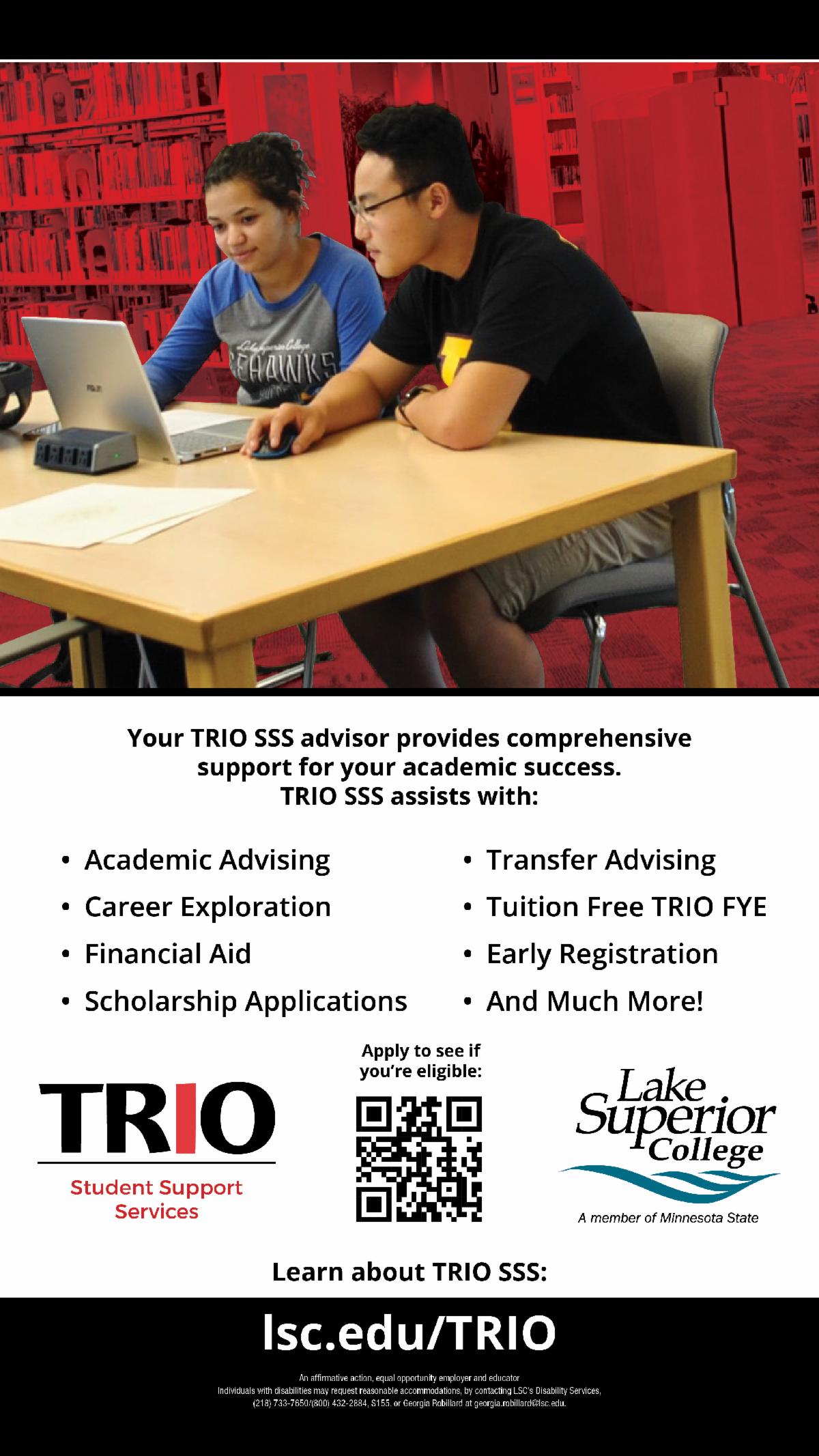 Individuals with disabilities may request reasonable accommodations by contacting LSC's Disability Services, (218) 733-7650/(800) 432-2884, S155, or Georgia Robillard at georgia.robillard@lsc.edu