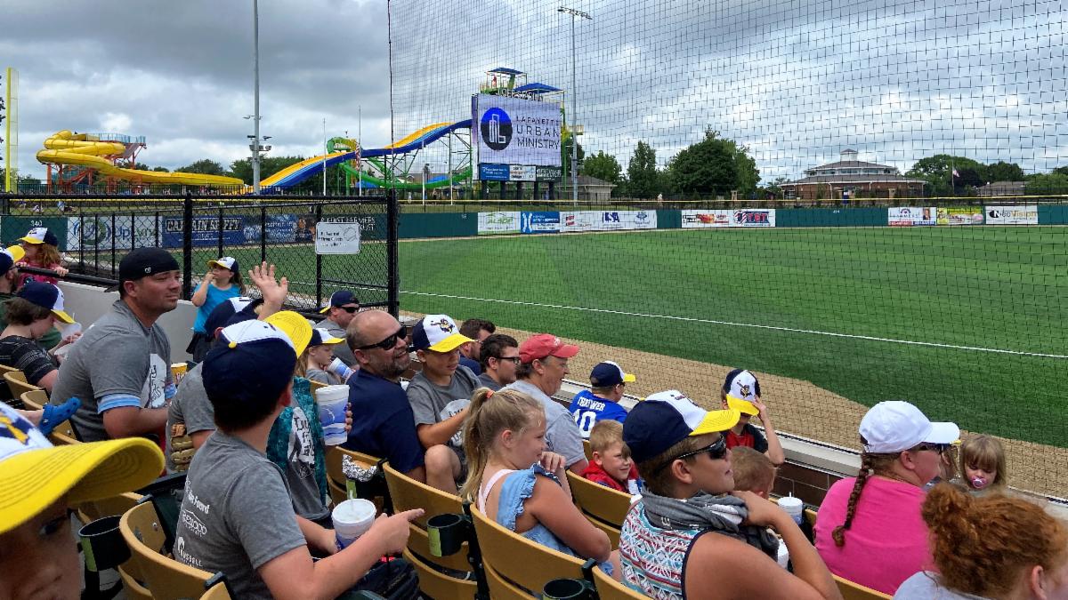 LUM Day for Dads is a new initiative designed to encourage and celebrate fathers who are engaged with their children and families. Sixty-five individuals from 12 families (12 parents and 41 kids) participated in the inaugural event -- a trip to the Lafayette Aviators baseball game this past Sunday at Loeb Stadium. Each dad and their family members received for free — a Day for Dads T-shirt, game ticket, food & drink vouchers, and an Aviators baseball cap. Highlights of the afternoon were seeing LUM executive director, Wes Tillett throw out the first pitch, an exciting win for the Lafayette Aviators, the LUM logo appearing on the jumbotron (pictured), and hearing the announcer thank the LUM dads for "their important role in their children's lives."