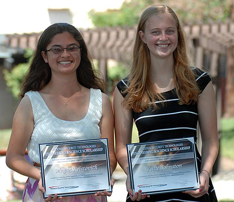 Megan Kristovich, left, and Katie Johnston, right, are the winners of this year's National Security Technologies (NSTec) / LVEF Engineering and Science Scholarships.