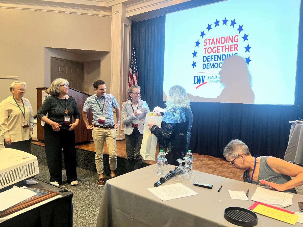 Before closing the plenary session, Nancy presented gifts to the outgoing board members: Michele Lamberti, Nick Doran, Kate Doran and Kathy Meany. Michele and Kathy could not attend, but gifts were accepted on their behalf. Nancy Rosenthal, the state League President, provided remarks to close the session.