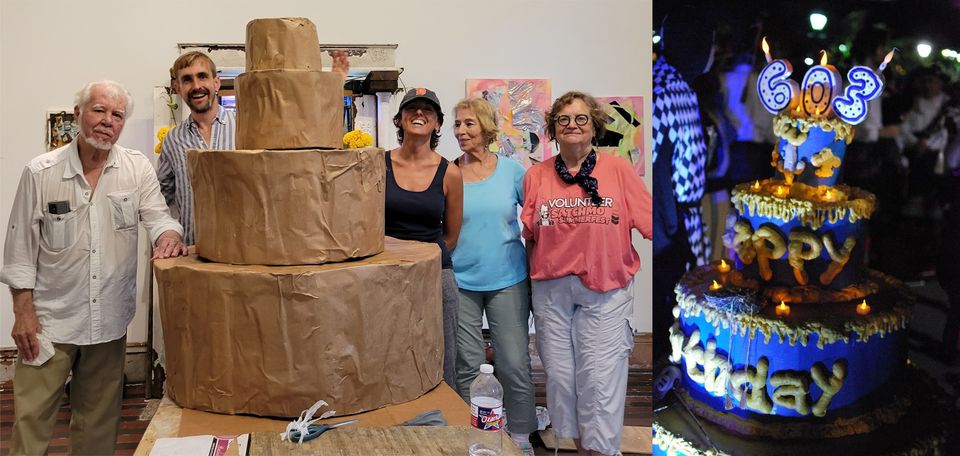 Help us "frost" our new giant birthday cake! Thanks to everyone who helped build the new cake structure at our summer build workshop with artist Jacob Martin. Next, we'll be using caulk, paint and spray foam to turn this brown paper into a luscious frosted cake, so you might want to wear your mess clothes. Jobs for all skill levels, everyone welcome (as long as you've been vaccinated!).