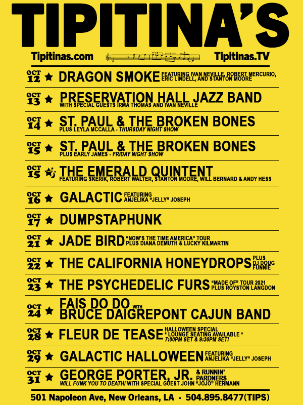 10/30: Big Chief Bo Dollis Jr and the Wild Magnolias 6:30-8:30