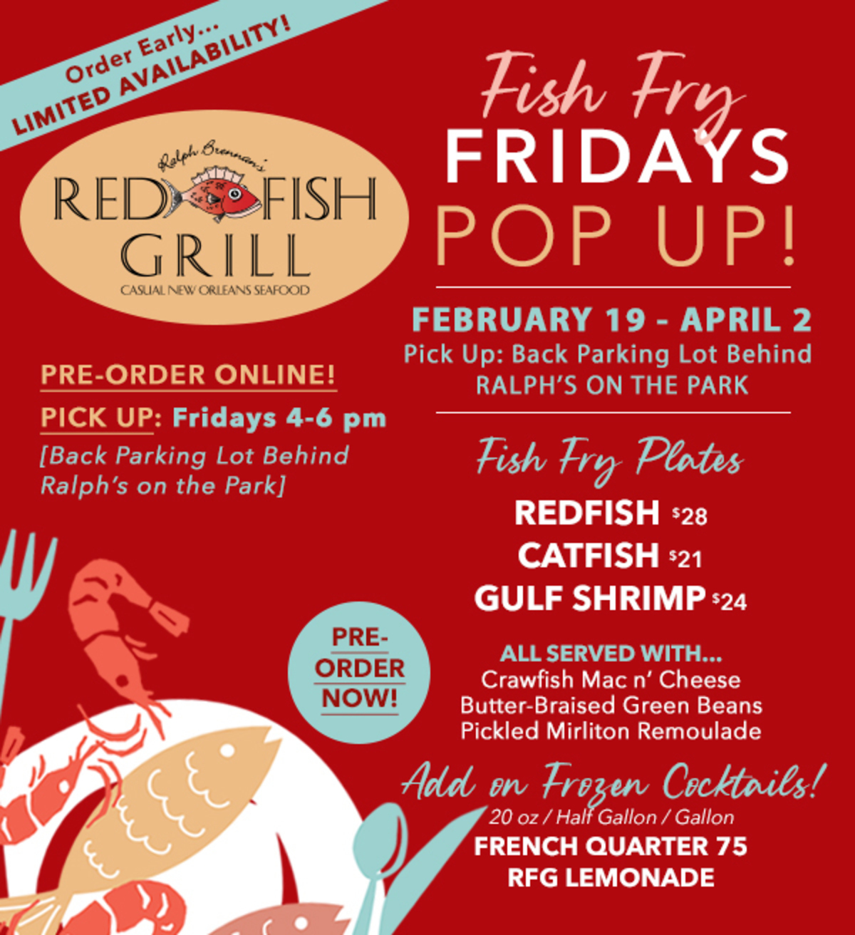 Chef Carl’s Famous Monday Night Fried Chicken is back. Every Monday . Served with red beans, cole slaw and a buttered biscuits.