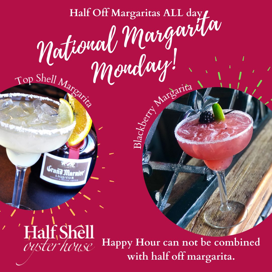 It's National Margarita Day and we are here to help you celebrate! Enjoy 1/2 off margaritas like our Top Shell or Blackberry Margarita ALL DAY. *Offer can not be combined with Happy Hour.* Must be 21 and older, enjoy reasonably.