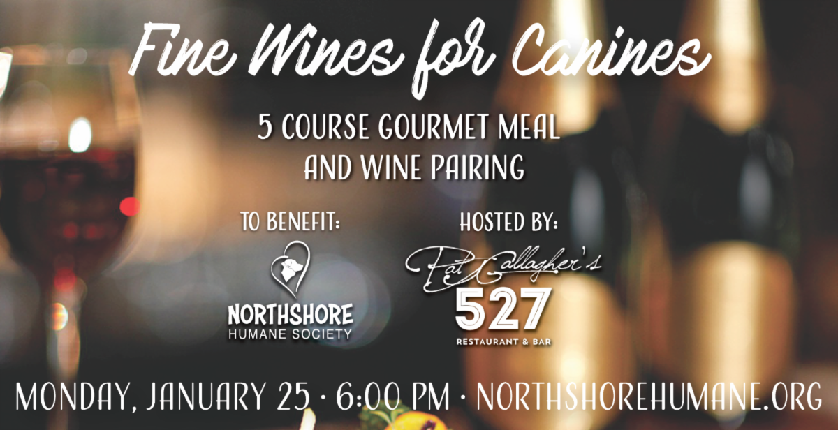 The highly-anticipated Fine Wines for Canines charity dinner and wine pairing to benefit Northshore Humane Society will be held this Monday, January 25th at Gallagher's 527 in Mandeville.