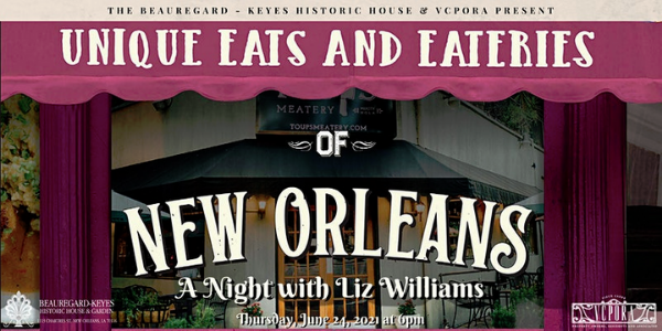 Join us as Liz Williams, founder of the National Food and Beverage Foundation, discusses her newest book, Unique Eats and Eateries of New Orleans. Williams is a regular food and drink contributor to national magazines, popular blogs, and radio programs. Her weekly podcast, Tip of the Tongue, explores the intersection of food, drink, and culture.