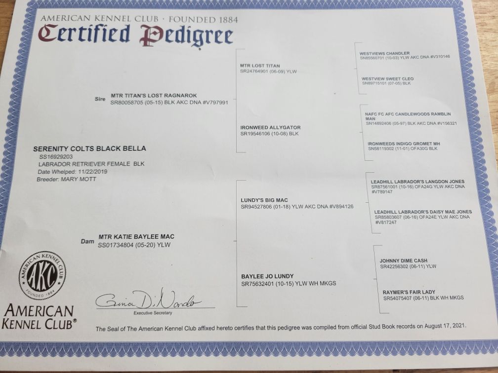 The puppy will be ready to go to his new home in approximately 8 weeks & bidders are encouraged to visit Serenity Labs to see the puppy and check out their Facebook page to see pictures and updates!