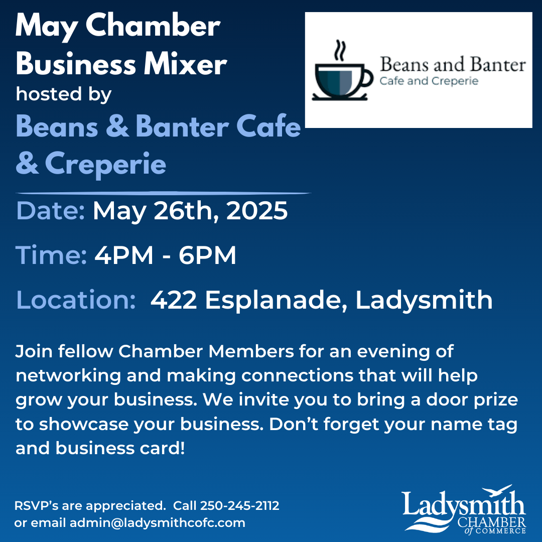 - May Business Mixer hosted by Beans & Banter Cafe and Creperie