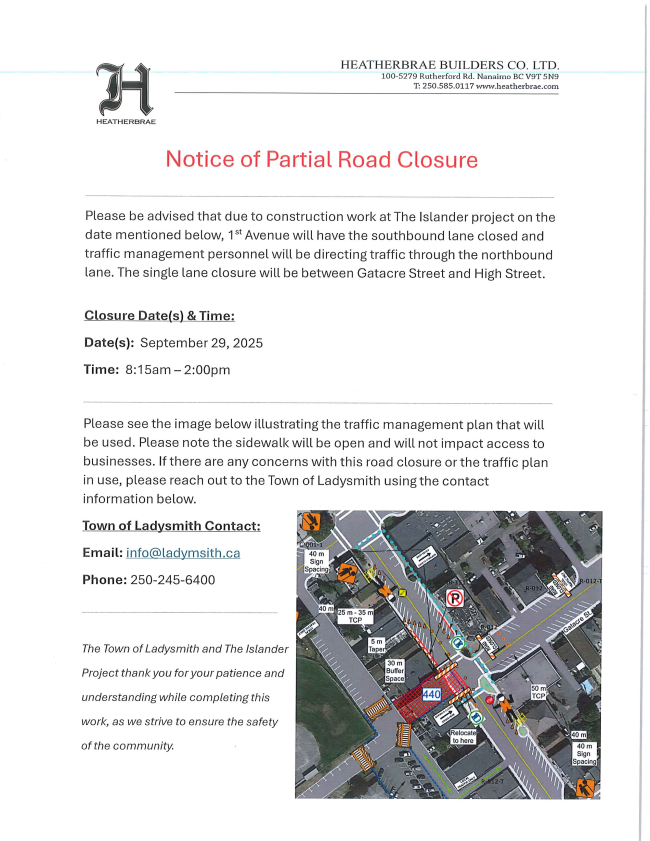 - Islander - Partial Road Closure Notice for 1st Avenue on Sept 29