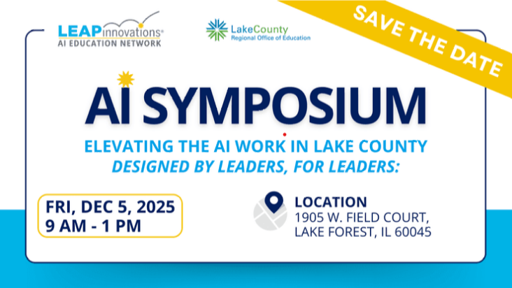 Join us on Friday, Dec. 5 (9 AM–1 PM) at 1905 W. Field Court, Lake Forest for the AI Symposium, a free event hosted by LEAP Innovations in partnership with the Lake County ROE.