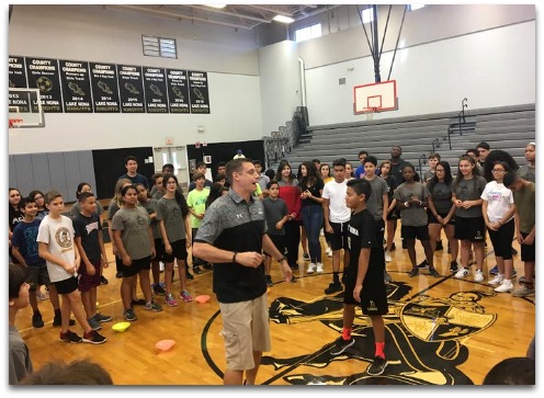 Coach Jack Lutzeier from Orlando Magic Youth Camps and TNBA (The National Basketball Academy) gave a great motivational and inspirational speech to our 1st period PE students today. We were extremely lucky to have him come in.