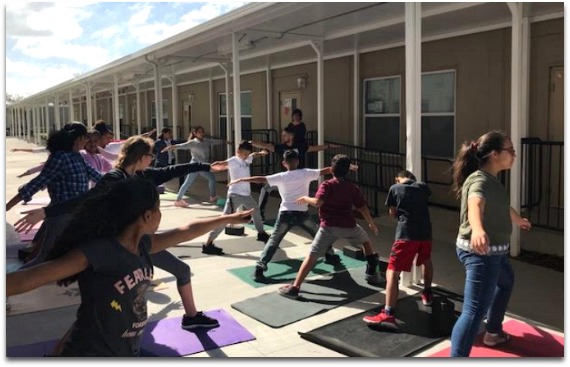 Alex Clermont, Yoga Instructor, with our Art students from Mrs. Clermont's class.