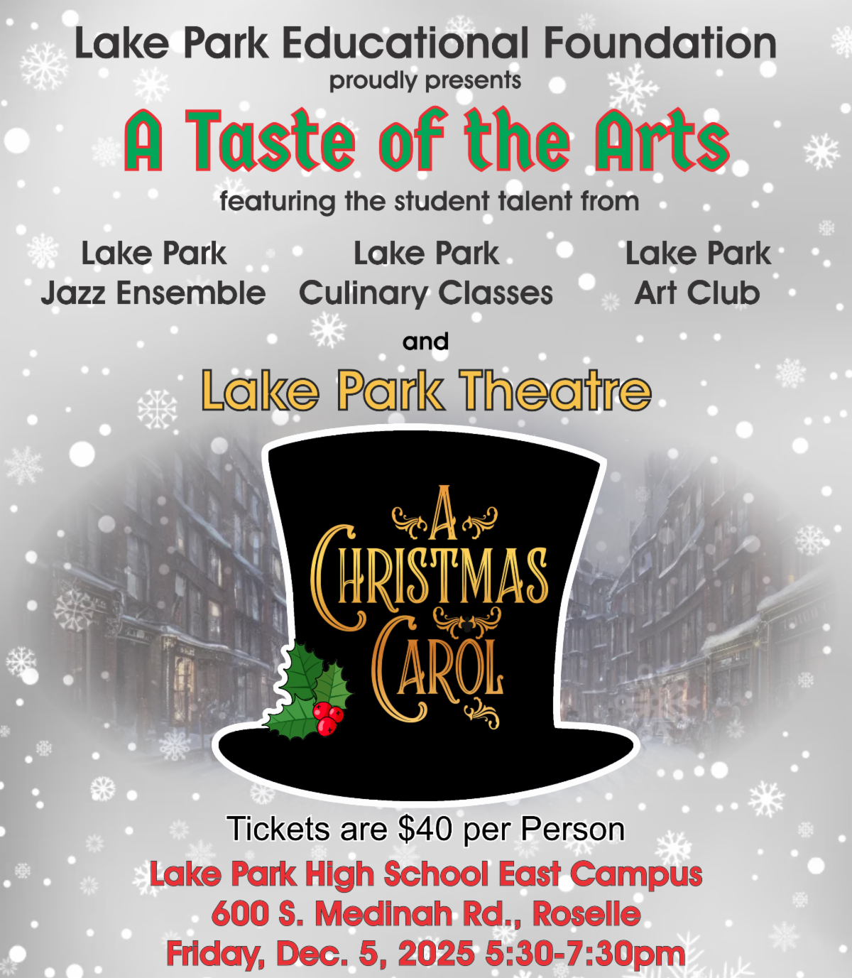 We are excited to invite you to be part of A Taste of the Arts, the Lake Park Educational Foundation’s newly reimagined signature event (formerly The Night of Fine Dining & Theatre), taking place on Friday, December 5, 2025, at Lake Park High School’s East Campus.