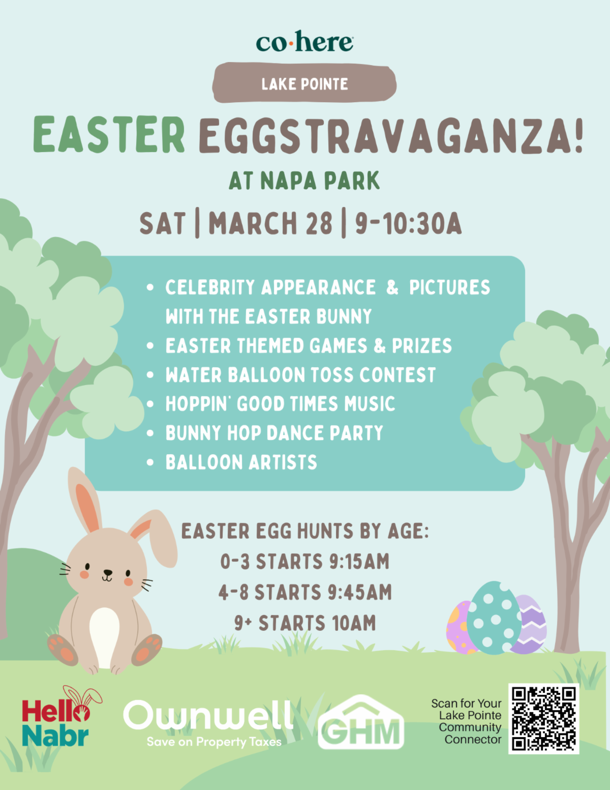 Join us for a hop‑worthy morning of Easter fun featuring a visit from the Easter Bunny, photo ops, egg hunts, a splashy water‑balloon toss, and whimsical balloon art, all packed into one bright, bunny‑approved springtime tradition.